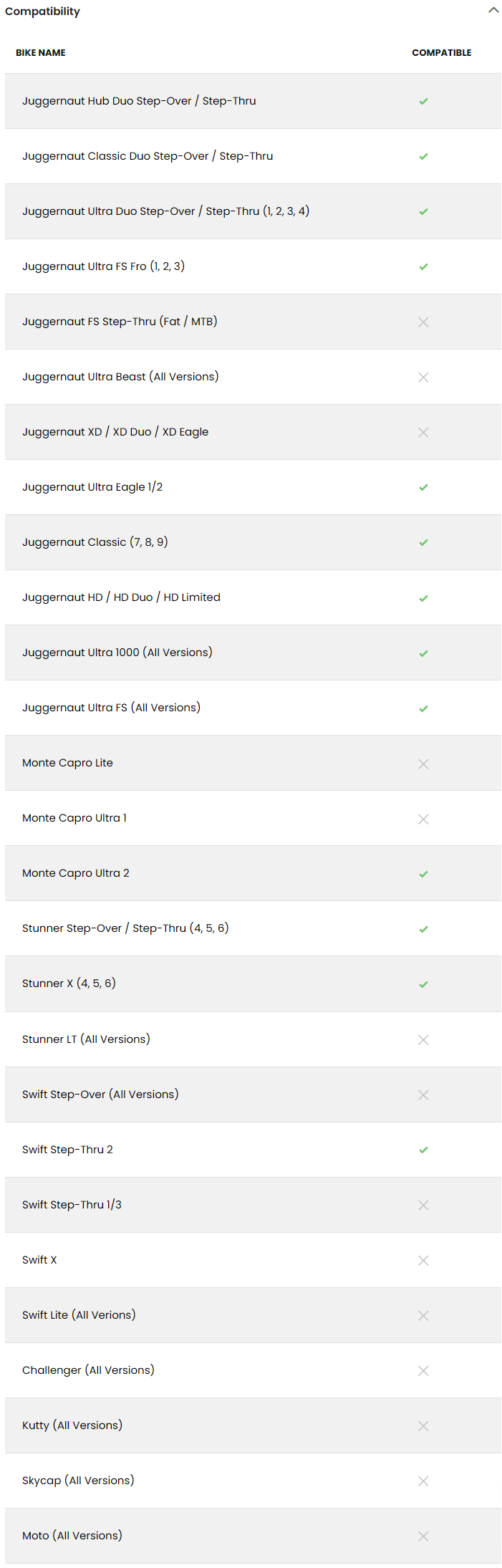 | Bike Name | Compatible |